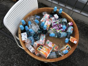 記念撮影の後はラムネやフルーツジュースの中からお好きな飲み物を選んでいただき、室内で水分補給をしました。
