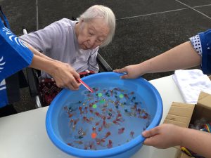 夕涼み会では、金魚すくい、わなげ、ヨーヨー釣りの3つのゲームをご利用者様に楽しんでいただきました♪