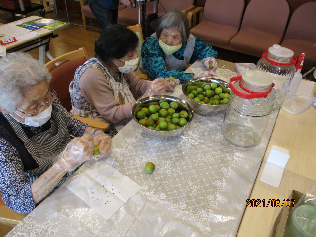 ひとつひとつ丁寧に梅のへたを竹串で取り除きました。