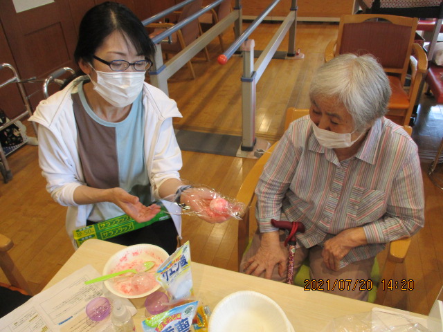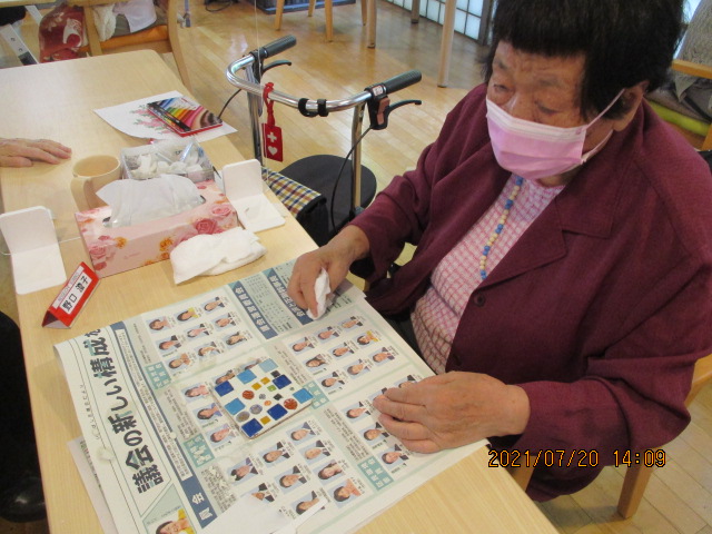 午後レク~塗絵・ガラスタイルコースター・入浴剤作り等~