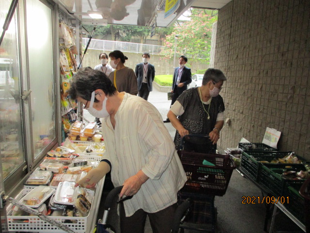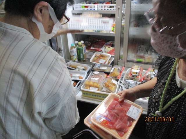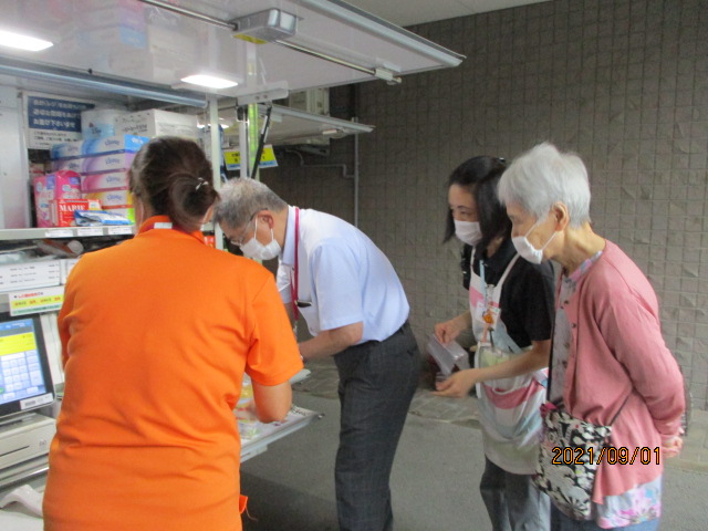 デイサービスや特養、ショートステイの利用者様や、地元近隣の方々、もちろん職員も次々お買い物。デイサービスでは現在4名様が「家まで荷物持たないから助かるの」と、毎週ご利用中です。