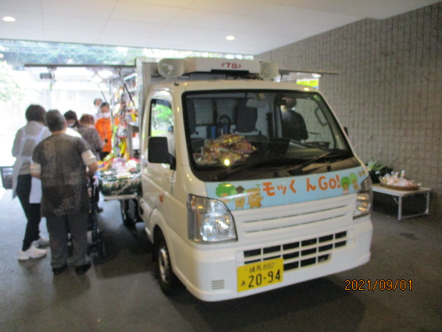 毎週水曜日午後1時になるとケアタウン成増のピロティーにダイエー移動販売車がやってきます。