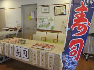 「寿司処」ののぼりを立て、本格的な握り寿司を召し上がっていただきました。