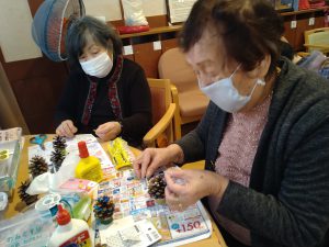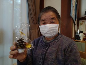 松ぼっくりを利用してかわいい「クリスマスツリー」を作りました。