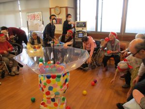 特に一番の盛り上がりを見せたのは、玉入れでした。紅組白組ともに健闘しており、利用者様の負けてたまるかというような元気な表情を見れたのがとても嬉しかったです。私たち職員も汗をかくくらい楽しんで参加させて頂きました。もしかすると職員の方が盛り上がっていたかもしれません。