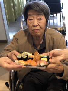 お寿司はとても好評で、普段お食事を多く召し上がれない方もほとんどすべてお寿司を召し上がっておりました。