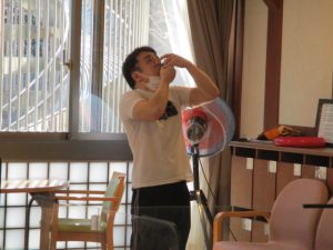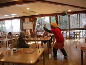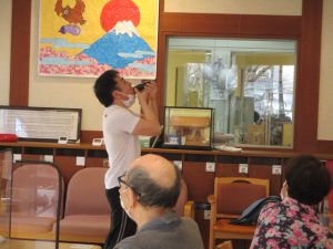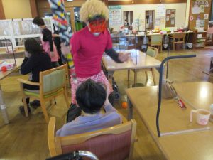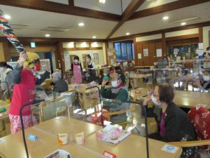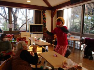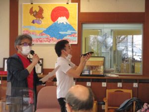 今年は箱石機能訓練指導員が皆様の「来福」を願って恵方巻1本食べる「恵方巻パフォーマンス」に挑戦です。
