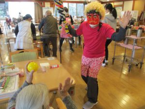 豆の替わりのカラーボールで鬼退治開始‼