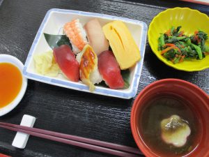 いなり寿司や鉄火巻きなども加わり、バラエティー豊かなお寿司を召し上がっていただきました。