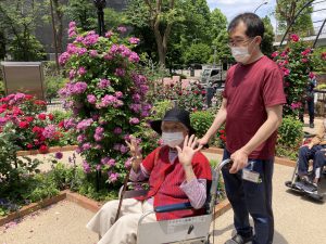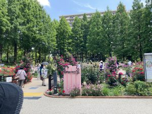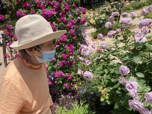 今月は感染対策を行い、バラの花を見に四季の香りのローズガーデンに行きました。