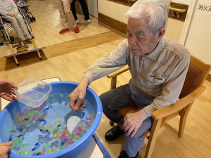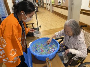 ゲームは金魚すくいとボーリングを行い、待ち時間は花火大会の映像を楽しんでいただきました🎇