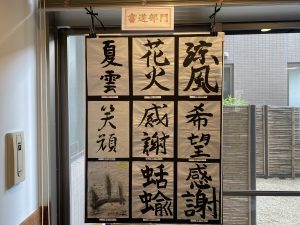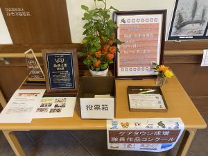 職員間のコミュニケーション活性化イベントとして、また「ご利用者様と一緒に楽しみ・学ぶ」機会を作ることを目的として、職員作品コンクールを開催中です。昨年は秋に開催しましたが、今年は『夏』をテーマといたしました。今回はボランティアの方々にもご参加いただき、更ににぎやかなコンクールとなりました。投票により金賞・銀賞・銅賞が選出されるのも職員の刺激となり作品作りに一層の工夫がされ、ご利用者の皆様もそんな作品に触れ楽しんでご覧になっていらっしゃいました。