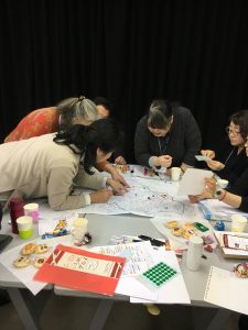 ・高齢者向けの情報(体操、食べる、趣味、カフェ・茶話会、サロン、貸スペース)を地図上に貼り、地域資源の”見える化”を行いました。傾向として貸しスペースは意外に多いことや、赤塚5丁目付近はサロンや集いの場が少ないことがわかりました。次回はより分かり易くマップにまとめるため実際に現地に出向き取材を行う準備をしていきます。