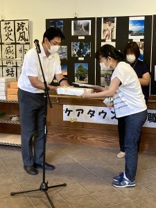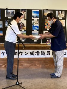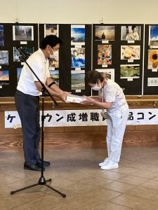 昨年度は秋に実施いたしましたが、今年度は「夏の職員作品コンクール」として第2回職員作品展示会を開催いたしました。川柳・写真・塗り絵・書道・手芸の作品が数多く出品され、職員・ご利用者参加による投票の結果、金賞・銀賞・銅賞者の表彰を行いました。
