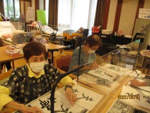 2022/09/09 デイサービス 9月の書道倶楽部 デイサービスの水曜午後は「書道倶楽部」です。 今日は2回に分けて7名のご参加。皆さん集中して取り組まれ、凛とした良い時間でした。 お知らせ一覧へ戻る