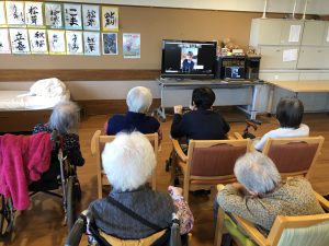 特養では赤塚公園、デイサービスでは東京大仏へ中継を行いました。