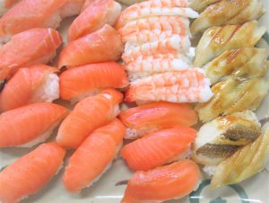 【にぎり寿司】まぐろ、はまち、あなご、えび、たまご
