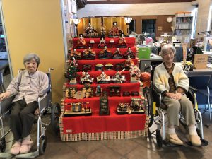 3月3日の雛祭りは各階に雛人形を飾り、ささやかなお祝いを行いました。
