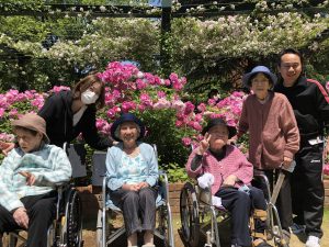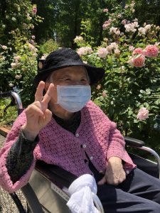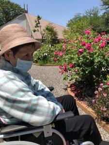 バラに手を伸ばして「ひとつ買いたいわ」と仰るご利用者様もいましたが、残念ながら販売はしていないので、持ち帰ることはできませんでした。それほどに熱心にバラをみて歩いている姿は、普段とは違う一面を見ているようで、個人的に嬉しく思いました。