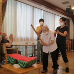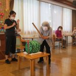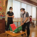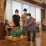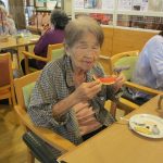 すいか割りの後は本物のスイカを切っておやつを食べました。真っ赤に熟れたすいかは甘くてとても美味しかったです。
