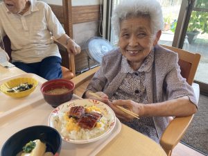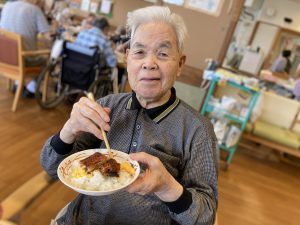 皆さまうな丼を楽しみにされており、「おいしいね」「うなぎ好きだよ」などとても喜ばれていました♪もちろんソフト食の方もうなぎを楽しんでいただきました。