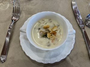 メインのお肉もおいしく、またクラムチャウダーには北海道産のアサリがたくさん入っていました!