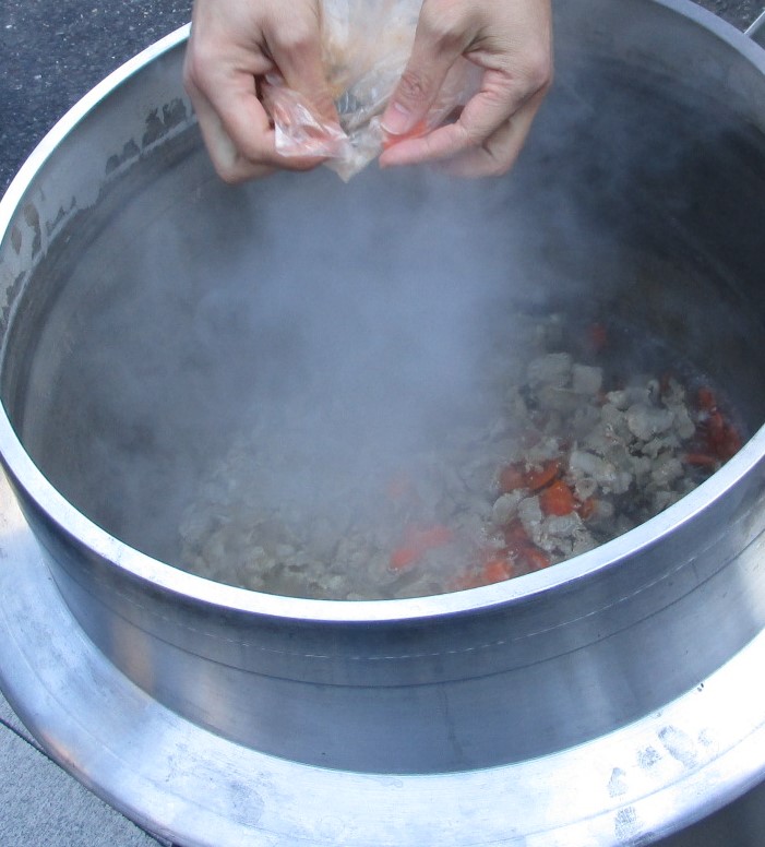 災害時用の十升炊き釜戸を使用し、今回は豚汁を作りました。
