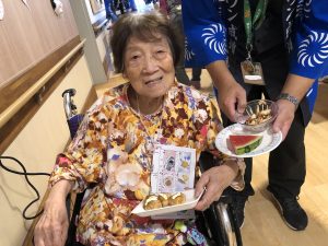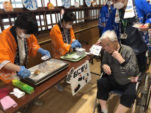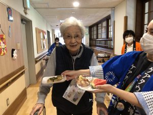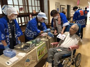 ケアタウンに夏がやってきました。8月17日土曜日、2階フロアで特養のご利用者様と職員中心で納涼会を行いました。