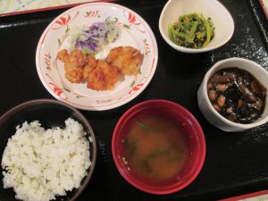 本日デイサービスでは、『鯖の竜田揚げ』『鶏肉の唐揚げ』のどちらかお好きな方を選んで頂きました。