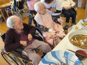 特養、デイサービスともに今日も笑顔が多くにぎやかな昼食になりました。