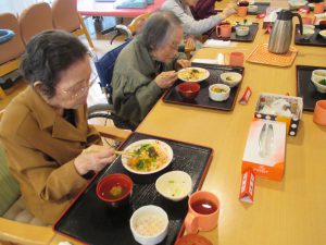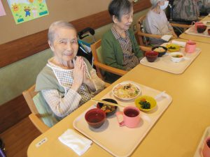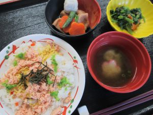 本日の昼食は“お寿司の日”。利用者様にご好評いただいているお寿司の日は、毎月具材を変えて提供をしております。