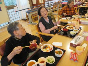 待ってました!と皆様の笑顔。まぐろ・サーモン・甘エビと卵焼きやキュウリで見た目にも彩りよく「きれいねぇ、おいしいねぇ」と多くの声を聞くことができました。