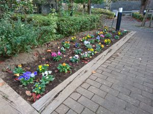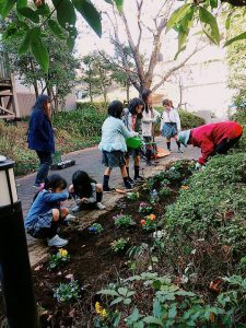 今年もガールスカウト東京都第71団の皆様に花壇の植え替えをお願いしたところ「日曜日でもよいですか?」と。「毎年やっているからわかります」の声に甘えさせていただき、スカウトさんとリーダーさんに全てお任せでやっていただきました。