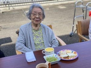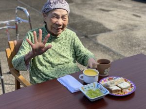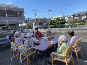 食後にはテラスを歩いて日光浴をされたりと楽しいランチタイムになりました。