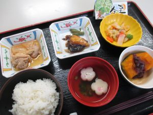 風邪をひかないで健康で過ごせるようにと、冬至にちなんでかぼちゃのいとこ煮を献立に取り入れてみました。
