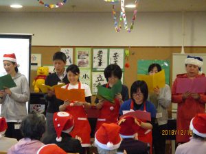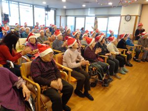 サンタやトナカイの帽子をかぶり、中にはトナカイに扮した職員もいたり、皆さん、音楽会をとても楽しまれていました。