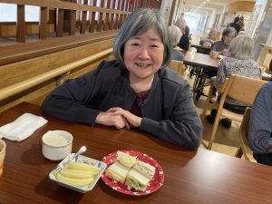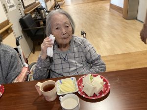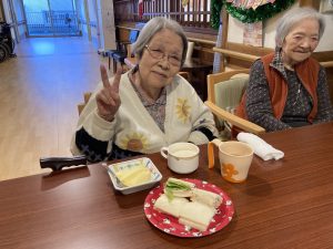 初めて参加されたご利用者様は勢いよく召し上がっており「美味しかったですか?」と声を掛けると頷いて反応してくださったり、楽しく会話されながら笑いのあるランチの時間を過ごしていました。