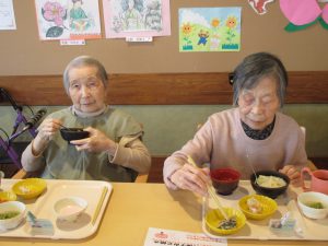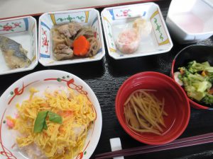 ちらし寿司や若竹汁、いちごババロアなど春らしいメニューで美味しくいただきました。