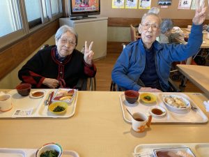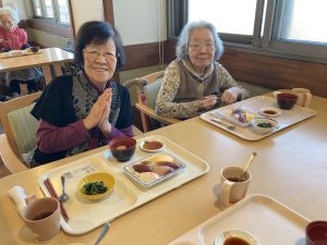 普段の食事も美味しいですが、お寿司はやっぱり格別です。職人さんがはっぴを着て目の前で配膳して下さるので、雰囲気も味も違います。ほとんどのご利用者様がお好きなネタのおかわりをされていました。ご利用者様の食欲と笑顔に職員もうれしくなりました。