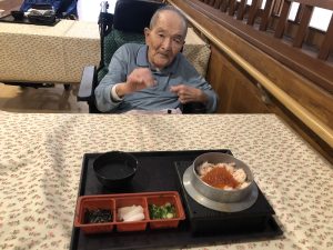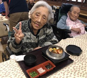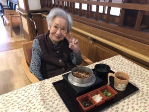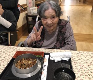 蓋を開けると香り立ついい匂いに利用者の皆様も「いい匂い」「美味しそう」と喜ばれていました。皆様おめでとうございます。この一年も元気にお過ごしください。