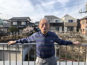 満開の白梅、電線から見つめる鳩、青空に羽ばたく飛行機