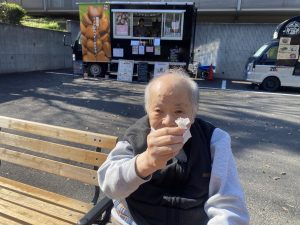 今回はキッチンカー『だいちゃん』のハート♡のベビーカステラを召し上がり、甘いベビーカステラと満開の桜で春の温もりを感じる時間でした。