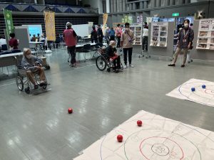 他の施設の作品を鑑賞したり、輪投げ・ボッチャコーナーでは真剣な表情で狙いを定め、ナイスプレーに大盛り上がりでした。