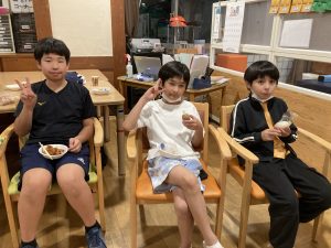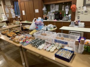 試合の合間には軽食コーナーを設けて、パンやおにぎり、唐揚げなどを提供しました。