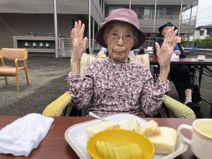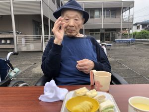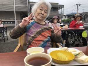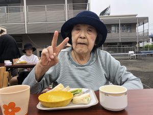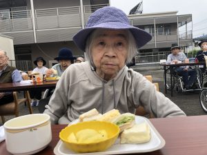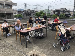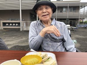 ご利用者からは「外でみんなで食べるランチは最高だ」と仰っていただき、初夏の爽やかな風の中で終始笑顔のひと時となりました。我々職員にとっても、参加された皆さんが笑顔で美味しそうに召し上がっている姿を拝見することができ最高の時間となりました。