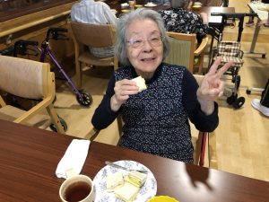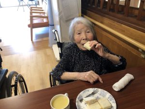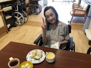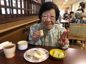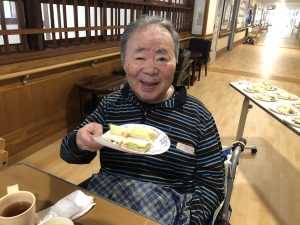 今日はご利用者様にサンドイッチのランチを楽しんでいただきました。メニューはふんわりサンドイッチとみずみずしメロンのちょっと特別な組み合わせ。「美味しいねえ。」「メロンなんてひさしぶり。」と笑顔がこぼれていました。 いつもの食事とは一味ちがうランチタイム、皆様に喜んいただけて職員も嬉しかったです。これからも「おいしい」「たのしい」「うれしい」を感じられる時間を大切にしていきたいと思います。