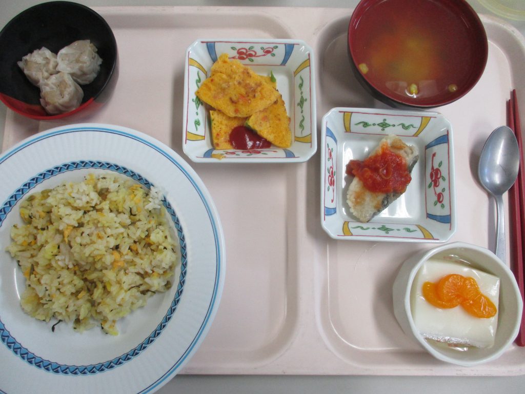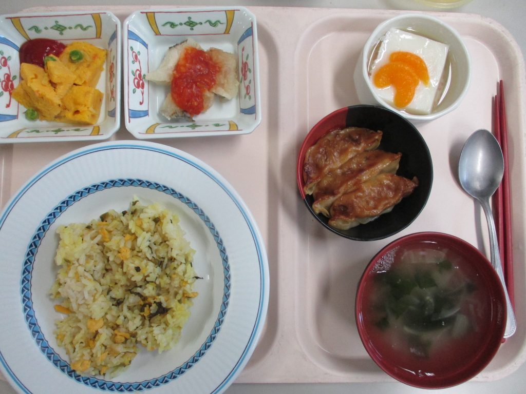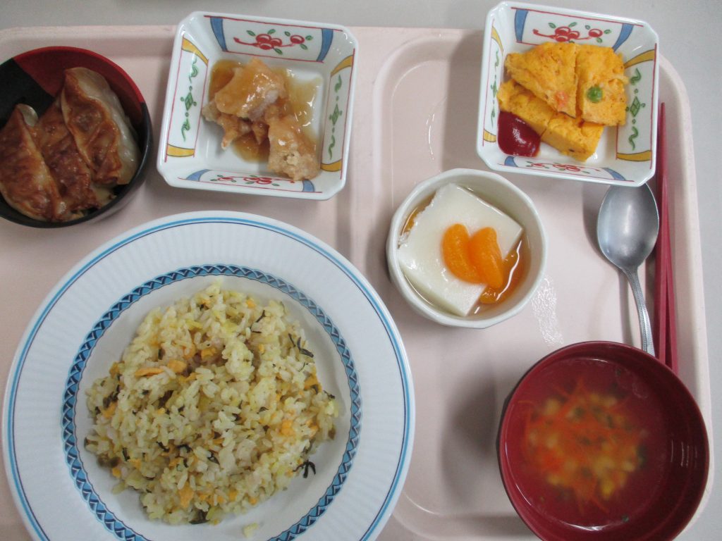 人気があったのは、主菜はかに玉と魚のチリソース、副菜は餃子、汁物はわかめスープでした。