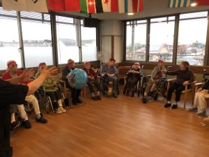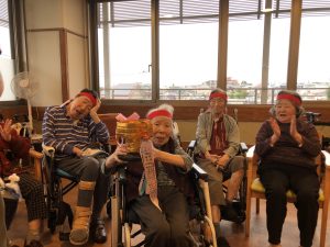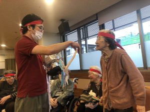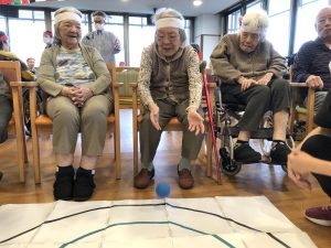 常日頃はおっとりとされている方も負けられない戦いがここにあると言わんばかりの勢いで声を出されてチームを鼓舞されたり、「勝ちたいわ!」と勝負に向けてすべての競技に全力で参加されていらっしゃいました。利用者の皆様、職員ともに力を合わせて楽しく身体を動かす時間を過ごすことができました。