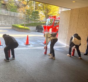 ②志村消防署成増出張所の皆様にご協力を頂き、初期消火訓練を実施しました。