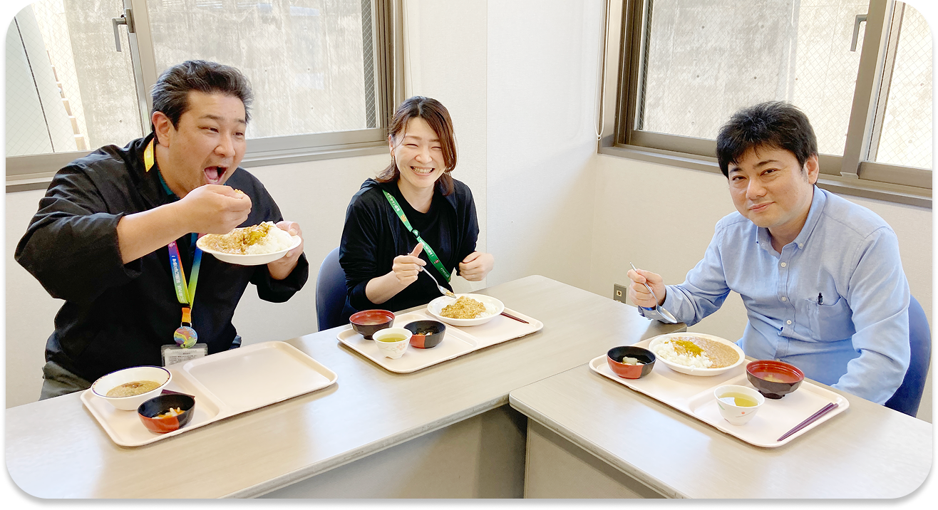 柔軟な勤務体制や休暇制度、各種手当などを整えることで、仕事とプライベートの調和を実現しています。ライフステージや家庭の事情に応じた働き方をサポートし、だれもが自分らしく活躍できる職場を目指しています。また、管理栄養士監修の社内食も1食400円で利用できることも魅力の一つです。